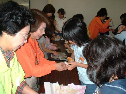 「手づくり」のコーナーです。鴨田スポーツクラブの方に教えてもらいながらいろいろな作品を作り上げました。