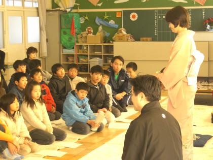 火曜日の雅楽鑑賞に引き続き、「いろはに邦楽・春の海」が6年生を対象に開かれました。今回は、箏・尺八・三味線の演奏を聴いたり体験したりしました。講師の先生は、渡辺峨山先生と大久保智子先生でした。先生方は、プロの演奏家として東京・名古屋をはじめ各地で演奏活動をしてみえる先生です。日本の音楽や和楽器に触れるとてもよい機会となりました。